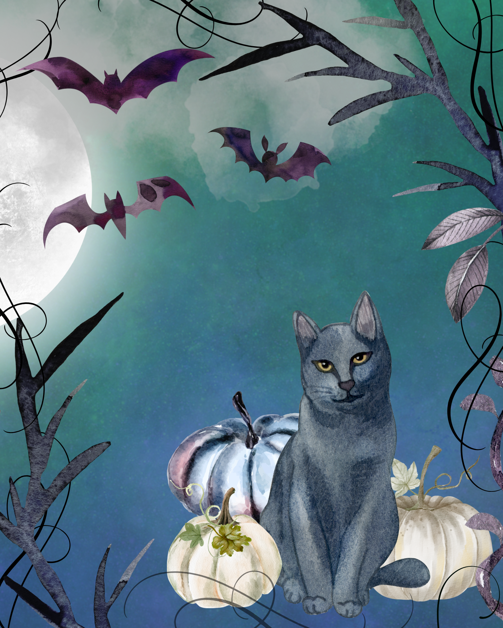 Black Cat at Night Printable 8X10"