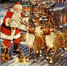 Santa w/ Reindeer LUNCH Napkin (set of 2)